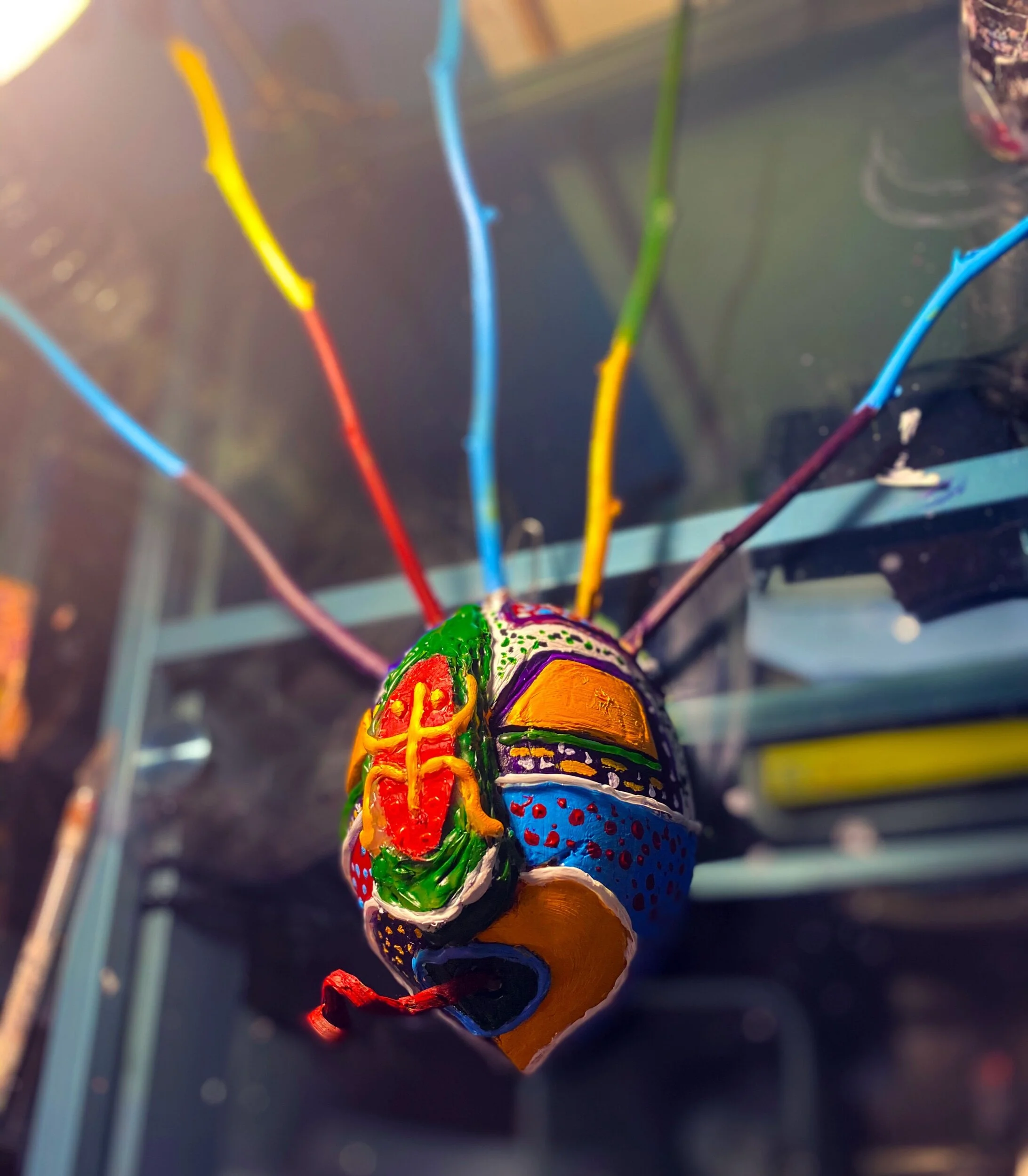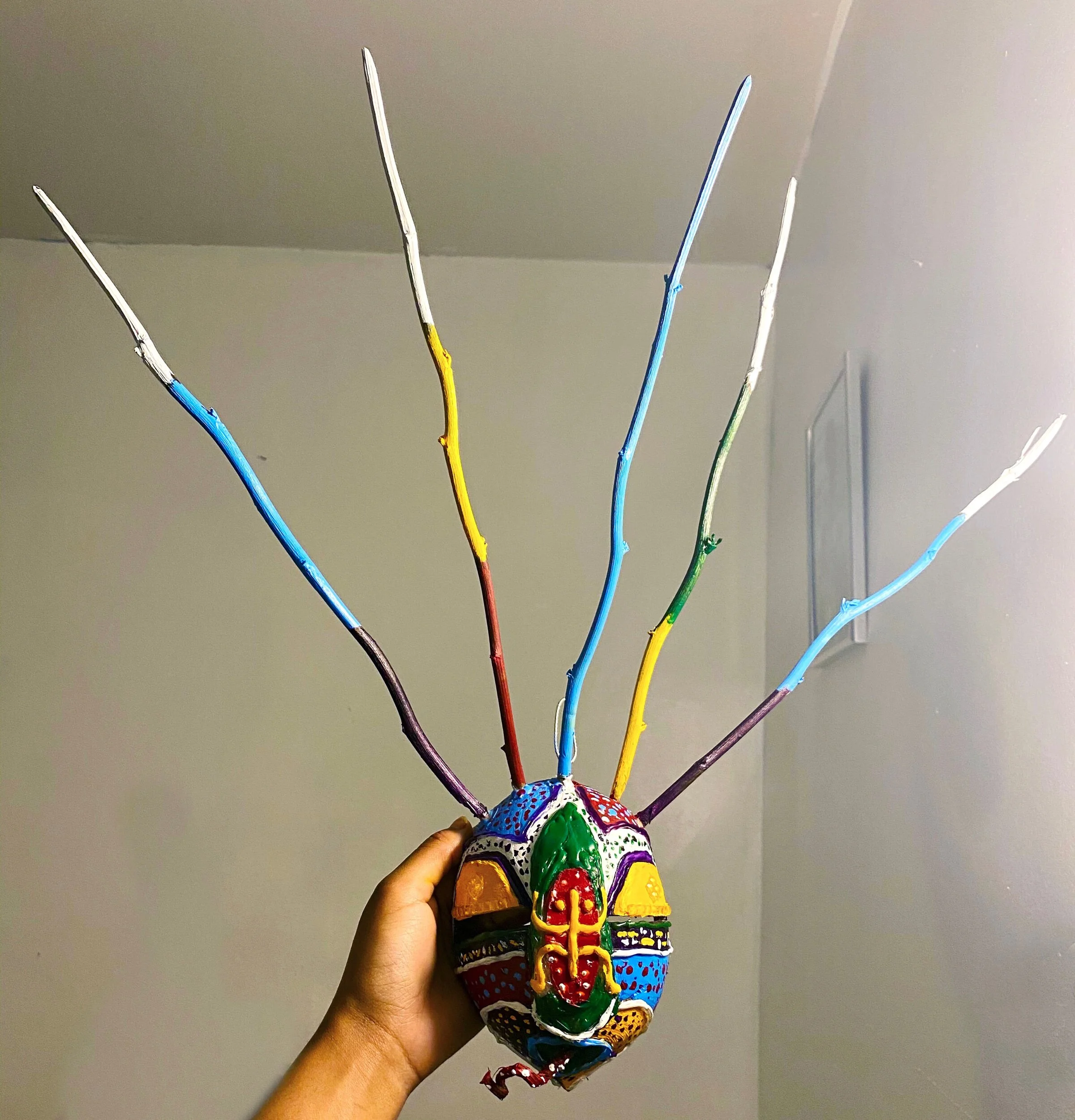 This series will showcase the unique styles of my mask sculptures influenced by the Vejigantes made of coconut from Loiza, Puerto Rico. All masks in this series are made from coconut and found objects from the earth.
